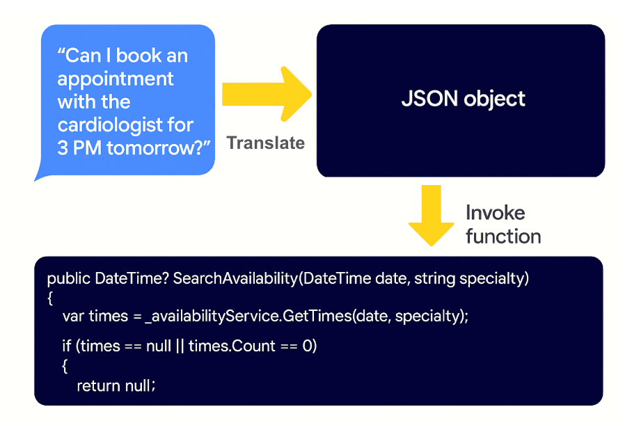 This example above shows us what this might look like. From the output you can see how easy it would be to perform some action such as searching for availability. If we view this principle as dictating where best to use LLMs, then the next principle tells us the opposite: where LLMs should be avoided.